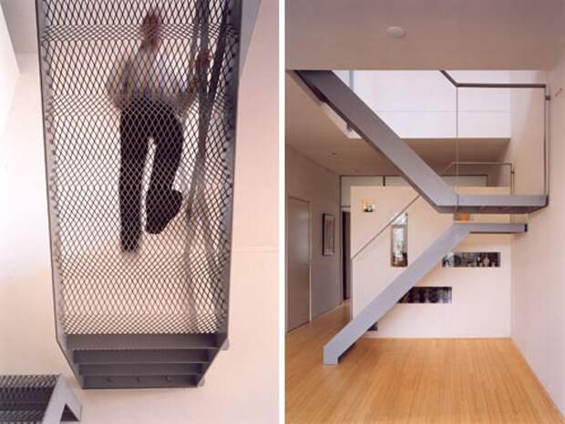 Эти лестницы, ведущие в верхнюю спальню, созданы по проекту nC2 в Бруклине, Нью-Йорк. Они включают в себя дополнительные стеллажи с альтернативными ступенями с целью максимально эффективного использования пространства.