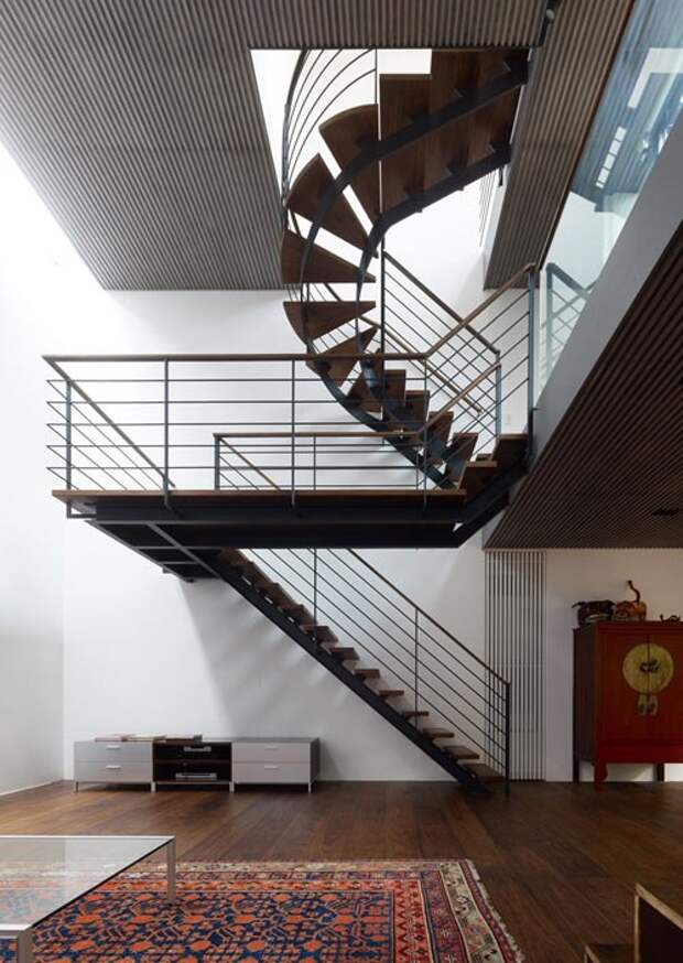 Эти плавающие лестницы из стали в Квартире #1 от Ecole являются потрясающим и истинным выражением минимализма.
