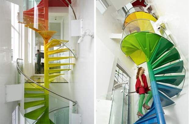 Как я мог написать пост о лестницах и не включить туда радужную винтовую лестницу, разработанную Ab Rogers Design, которую мы увидели в прошлом году в Доме Радуги?