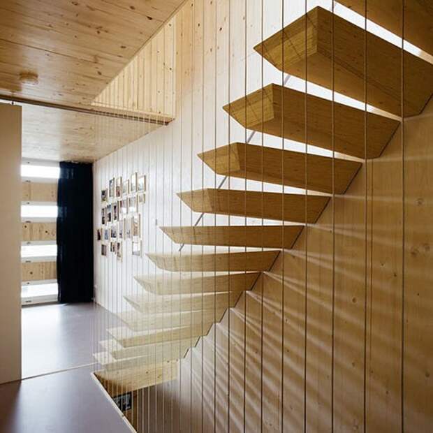 Голубой Дом из экологически чистых материалов, построенный по проекту архитектора Питера Вайнена из Faro Architecten, характеризуется современными элементами декора в морском стиле. Архитектор построил дом для своей семьи на Штайгерленде, одном из искусственных островов Амстердама, и лестница здесь словно бы парит в воздухе без какой-либо поддержки. По бокам расположены стальные тросы для безопасности.